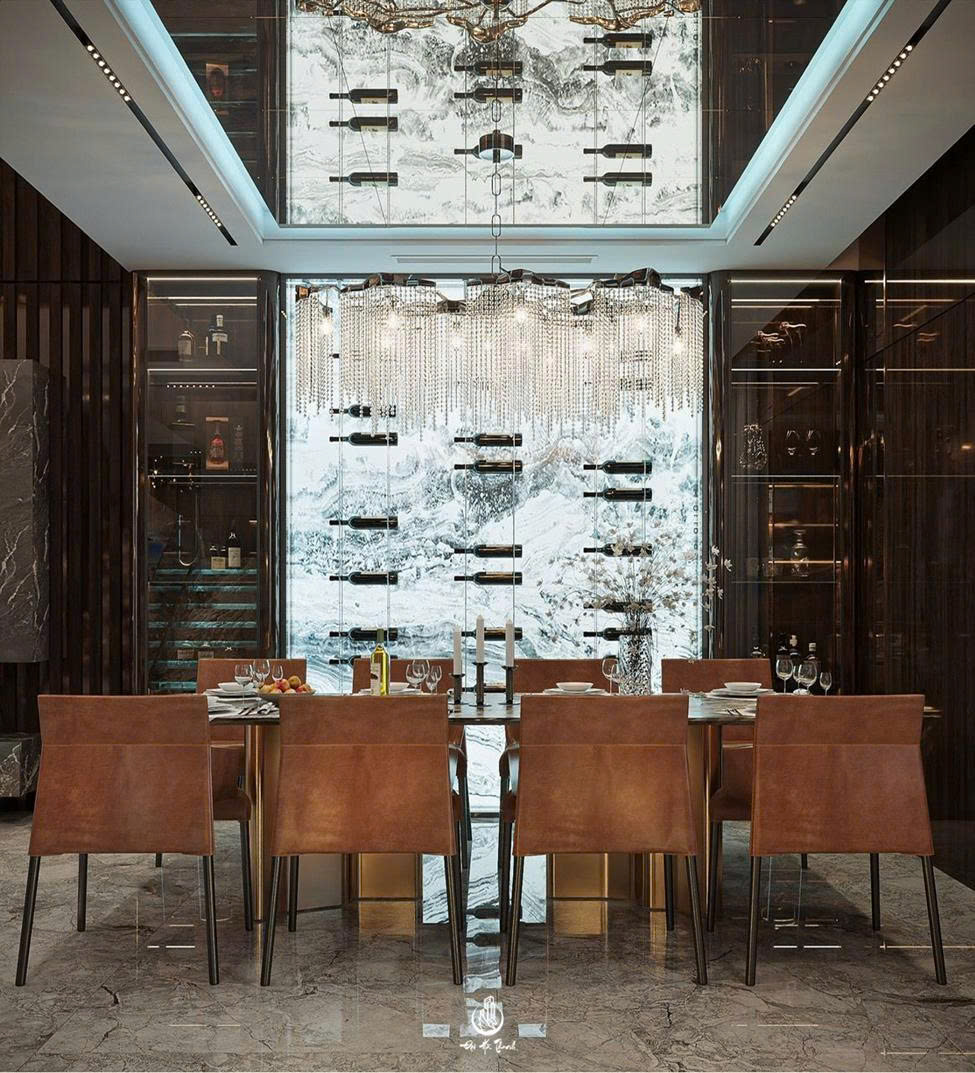 • Kiến trúc tinh xảo: Ngoại thất biệt thự nổi bật với những đường nét kiến trúc mạnh mẽ, hình khối độc đáo, kết hợp cùng các vật liệu cao cấp như kính, đá marble và kim loại, tạo nên vẻ đẹp lộng lẫy và bề thế.