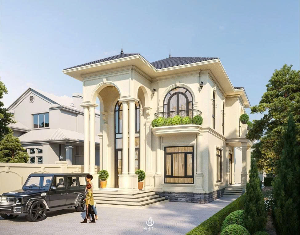 • Kiến trúc Tân cổ điển: Ngoại thất biệt thự nổi bật với những đường nét tinh xảo, phào chỉ mềm mại, hệ cột vững chãi và những khung cửa vòm duyên dáng, mang đến vẻ đẹp bề thế, sang trọng.