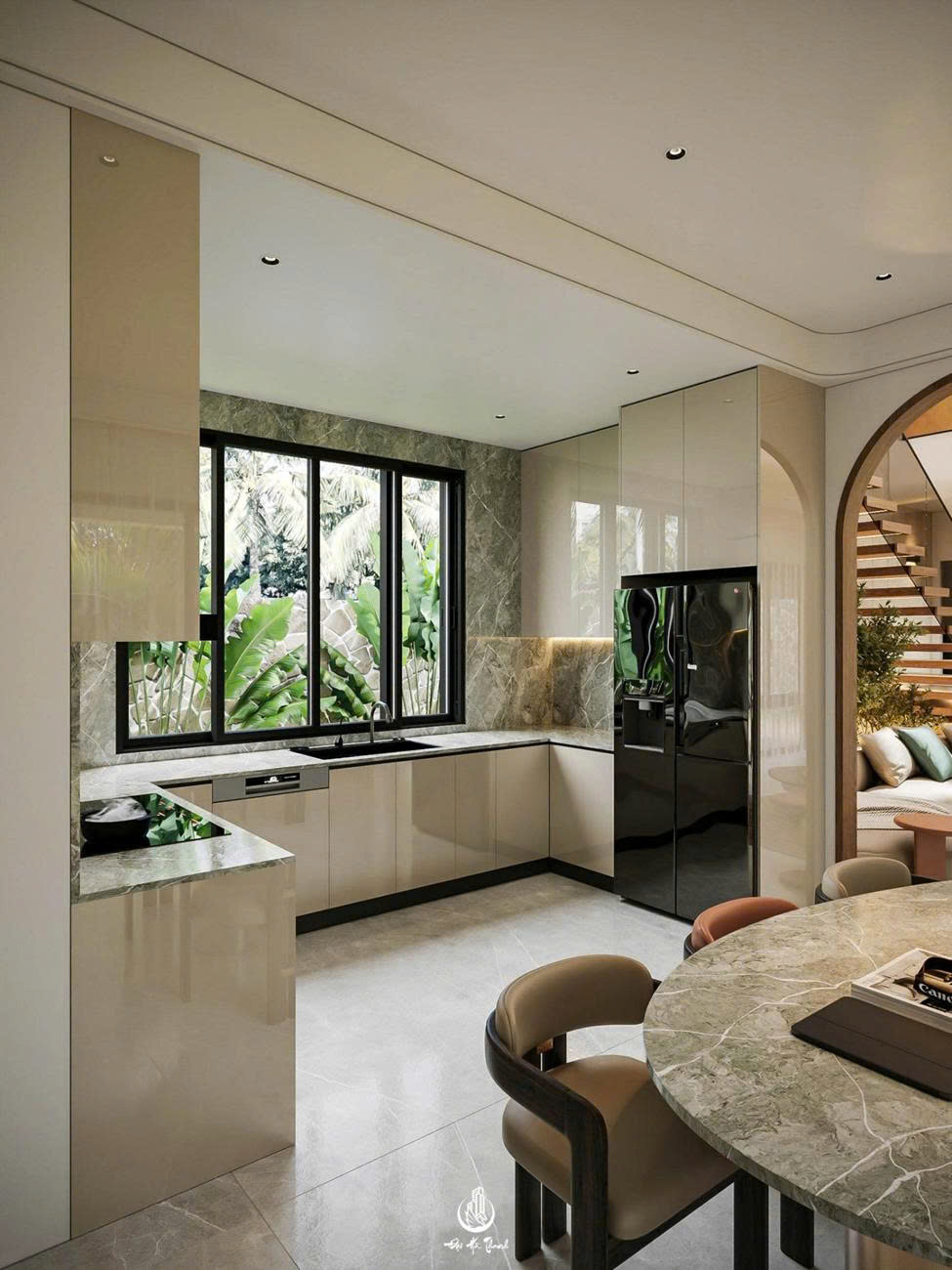 • Tối ưu công năng: Với diện tích 420m², mỗi không gian đều được tính toán tỉ mỉ, tối ưu hóa công năng để mang lại sự thoải mái tuyệt đối cho gia chủ. Phòng khách và bếp được thiết kế liên thông, tạo sự kết nối liền mạch và thuận tiện cho sinh hoạt gia đình.