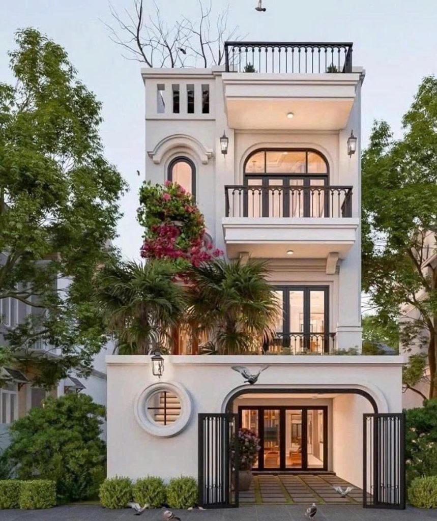 • Kiến trúc Tân cổ điển: Ngoại thất ngôi nhà nổi bật với những đường nét tinh xảo, phào chỉ mềm mại, hệ cột vững chãi và những khung cửa vòm duyên dáng, mang đến vẻ đẹp bề thế, sang trọng.