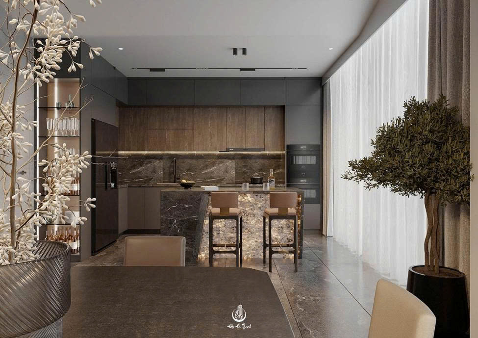 • Tối ưu công năng: Với diện tích 580m², mỗi không gian đều được tính toán tỉ mỉ, tối ưu hóa công năng để mang lại sự thoải mái tuyệt đối cho gia chủ. Phòng khách và bếp được thiết kế liên thông, tạo sự kết nối liền mạch và thuận tiện cho sinh hoạt gia đình.